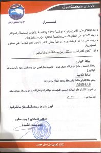 إعادة تقييم شاملة لقيادات وأعضاء الحزب استعدادًا لمرحلة جديدة من الحراك التنظيمي وضم وجوه شابة تؤمن بالعمل الحزبي الحقيقي