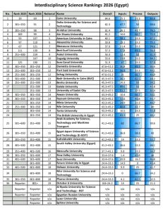 وفي إنجاز نوعي آخر، دخلت الجامعة لأول مرة تصنيف التايمز للتخصصات البينية لعام 2025 محققة المركز 167 عالميًا والعاشر محليًا ضمن 911 جامعة من 94 دولة. وسجلت الجامعة نتيجة إجمالية 53.6 نقطة تتوزع إلى: مدخلات 33.8، عملية 33.3، مخرجات 64.3، ويُبرز هذا التفوق جودة الأبحاث متعددة التخصصات وتأثير المنشورات العلمية على المستويين المحلي والدولي.