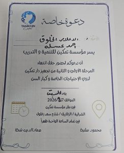 كما يُسلّط الضوء على جهود فريق العمل بالمؤسسة، وفي مقدمته الأستاذة شريفة الشاعر، مسؤول التطوير بمؤسسة تمكين، لدورها في دعم مسارات التطوير والتخطيط والمتابعة، والمشاركة في الإعداد الإداري والتنظيمي للمشروع، ضمن منظومة عمل جماعي تستهدف تحقيق أفضل مردود إنساني وتنموي.